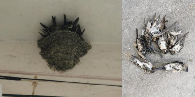 研究人员在湛江一处家燕巢中发现多只被冻僵的家燕丨田丽 摄