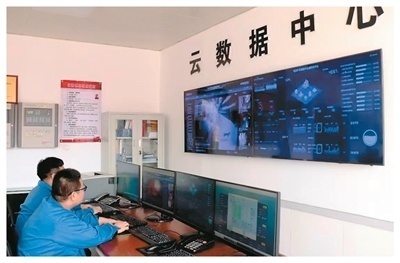 在屯兰矿云数据中心,工作人员在实时监控。 张 健摄